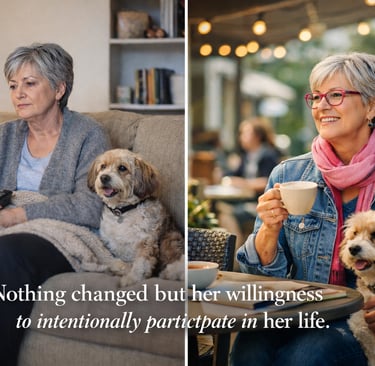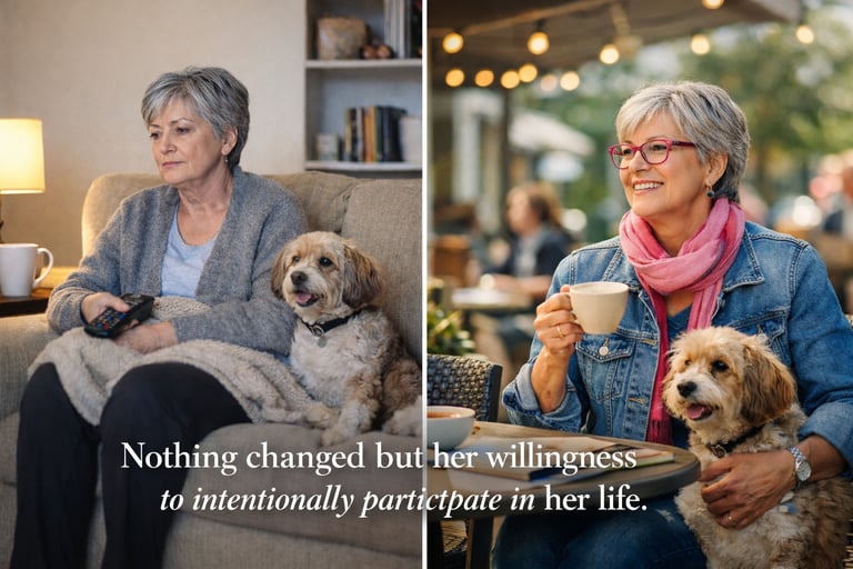 There’s a quiet difference between passing time and participating in your life. This reflection explores how comfort can slowly become retreat — and how small, intentional choices can bring presence and joy back into everyday living.